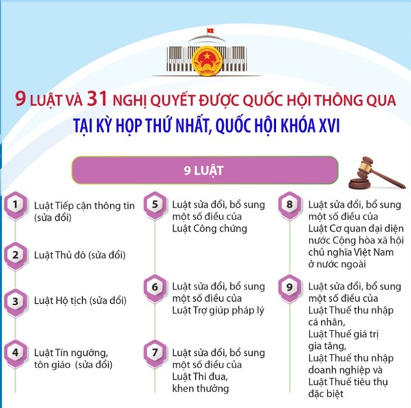 9 luật và 31 nghị quyết được thông qua tại Kỳ họp thứ nhất, Quốc hội khóa XVI