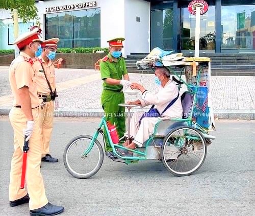 Chiều tối ngày 10/8, trong lúc tuần tra, phát hiện cụ ông ngồi trên xe lăn tìm mua thức ăn nhưng không mua được, dù bụng cũng đang đói cồn cào nhưng các chiến sĩ trong tổ tuần tra Cảnh sát giao thông trật tự Công an quận Ninh Kiều vẫn vui vẻ nhường suất cơm chiều của mình cho cụ ông. Trước đó, cũng trên đường tuần tra phòng chống COVID-19, Thượng sĩ Huỳnh Tấn Đạt, chiến sĩ của đội đã giúp chị Huỳnh Thị Khánh Nhung (53 tuổi, ngụ quận Ninh Kiều) sửa xe bị chết máy để chị kịp giao gạo, nhu yếu phẩm đến với bà con trong khu cách ly, phong tỏa. Đại úy Nguyễn Huy Hoàng, Đội phó Cảnh sát giao thông trật tự Công an quận Ô Môn cùng tổ tuần tra giữa đêm khuya phát hiện hai vợ chồng đưa con đi cấp cứu bằng xe gắn máy nhưng xe bị hết xăng phải dẫn bộ, anh liền tìm cách mua xăng để hai vợ chồng kịp đưa con đến bệnh viện cấp cứu. Mới đây, lại xuất hiện thêm hình ảnh chiến sĩ Công an gây xúc động mạnh trong lòng Nhân dân khi Đại úy Thạch Bình, Đội trưởng Đội phong trào Công an huyện Cờ Đỏ đến từng nhà hớt tóc miễn phí cho người dân ở ấp Thới Hòa B, thị trấn Cờ Đỏ, huyện Cờ Đỏ. Đai úy Thạch Bình, chia sẻ: “Thời gian giãn cách xã hội, thấy tóc của nhiều người dân dài, gây ngứa, khó chịu, mình cũng có nghề hớt tóc nên giúp bà con hớt tóc cho gọn gàng, sạch sẽ. Trong lúc hớt tóc, nhắc nhở bà con chấp hành nghiêm các quy định về phòng chống dịch”.