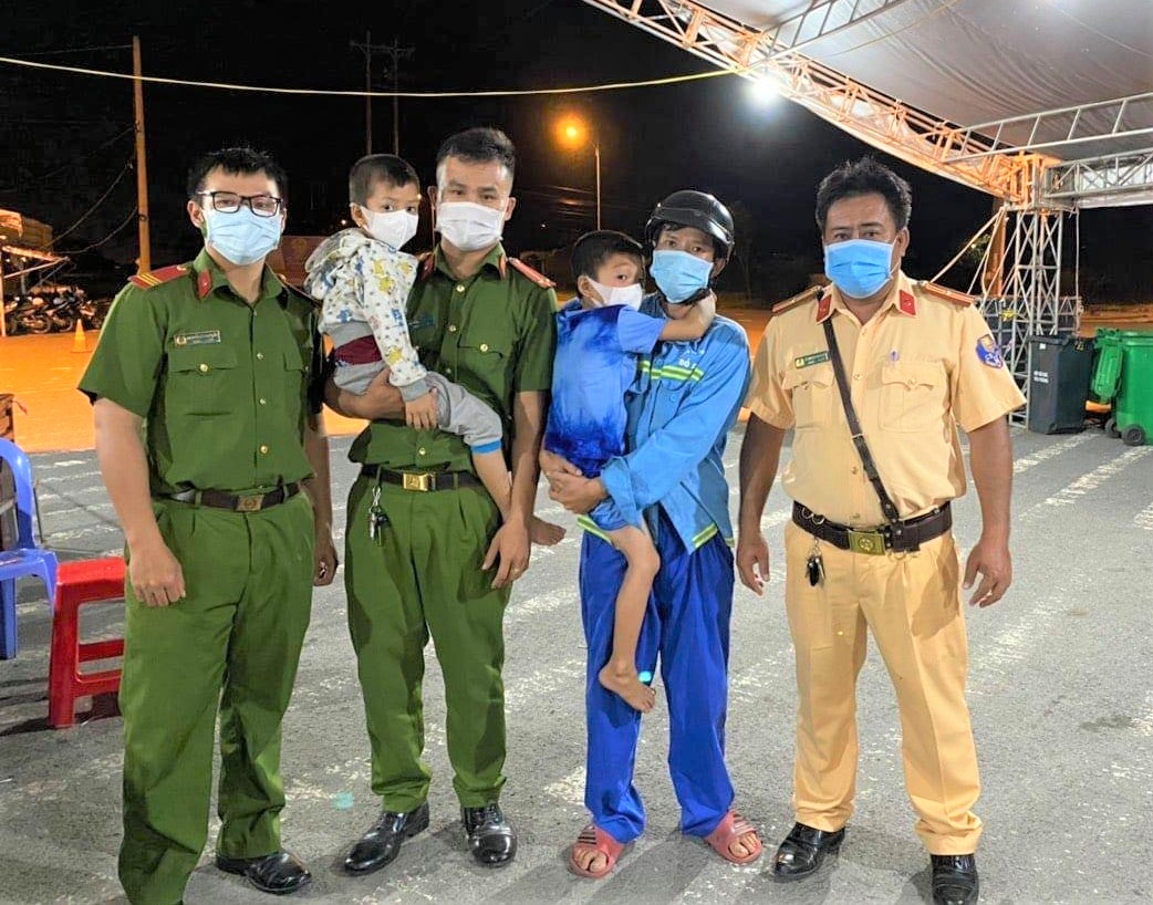 Còn nhớ khoảng 2 giờ khuya ngày 28/7, khi đang làm nhiệm vụ tại chốt kiểm dịch trên đường Võ Nguyên Giáp, đoạn thuộc phường Tân Phú, quận Cái Răng, Thiếu tá Nguyễn Trung Nguyên cùng các đồng chí trong tổ nhận được tin báo của người dân có hai trẻ nhỏ đi lạc, không có người lớn đi cùng. Lập tức, anh cử người xuống ngay hiện trường. Thiếu tá Nguyễn Trung Nguyên, cho biết: “Lúc đó, tiếp nhận tin báo của người dân, tổ liền cử hai đồng chí Nguyễn Thanh Duy và Nguyễn Thanh Triều, trực chốt xuống ngay hiện trường thì phát hiện hai bé trai đi bộ ven khu vực cầu Bến Bạ, thuộc phường Tân Phú nên liền đưa hai bé về chốt cho uống nước, chăm sóc tìm cách liên hệ với người nhà”.