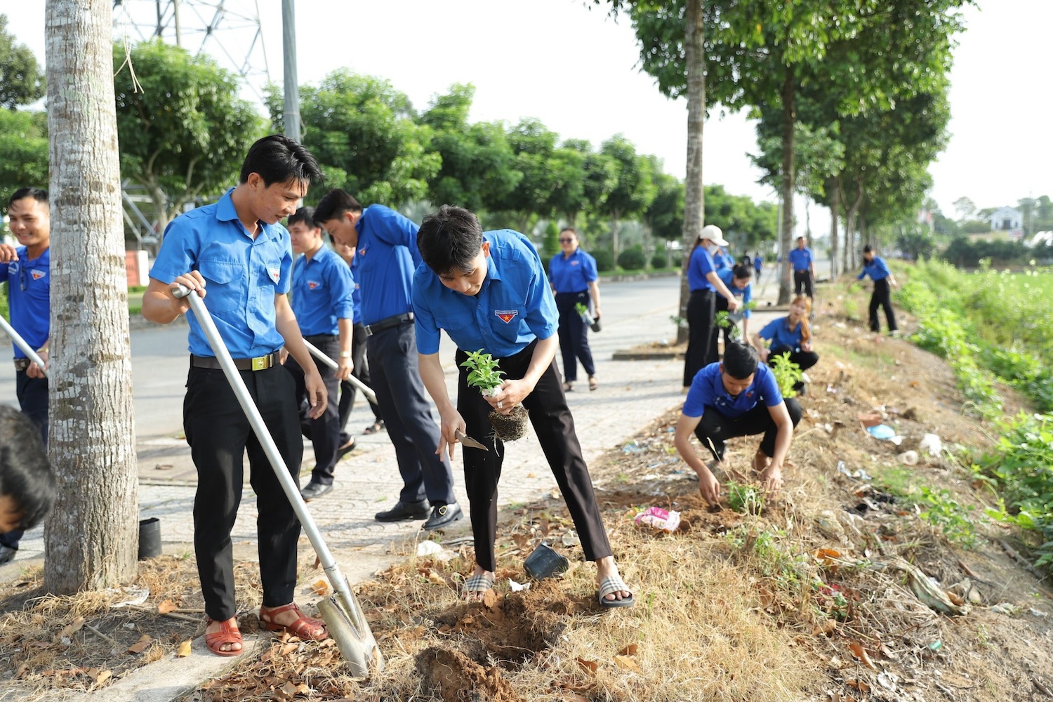 Lực lượng đoàn viên thanh niên dọn dẹp vệ sinh và trồng cây xanh. Ảnh: Khánh Đăng.
