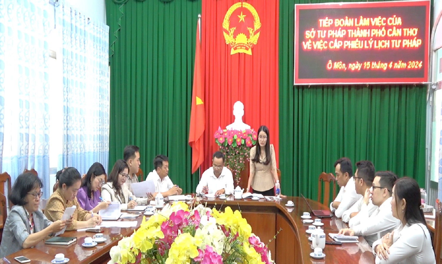 Đoàn công tác của Sở Tư pháp thành phố Cần Thơ có buổi làm việc với UBND quận Ô Môn về việc phối hợp thực hiện cấp phiếu lý lịch tư pháp trực tuyến trong thời gian tới.