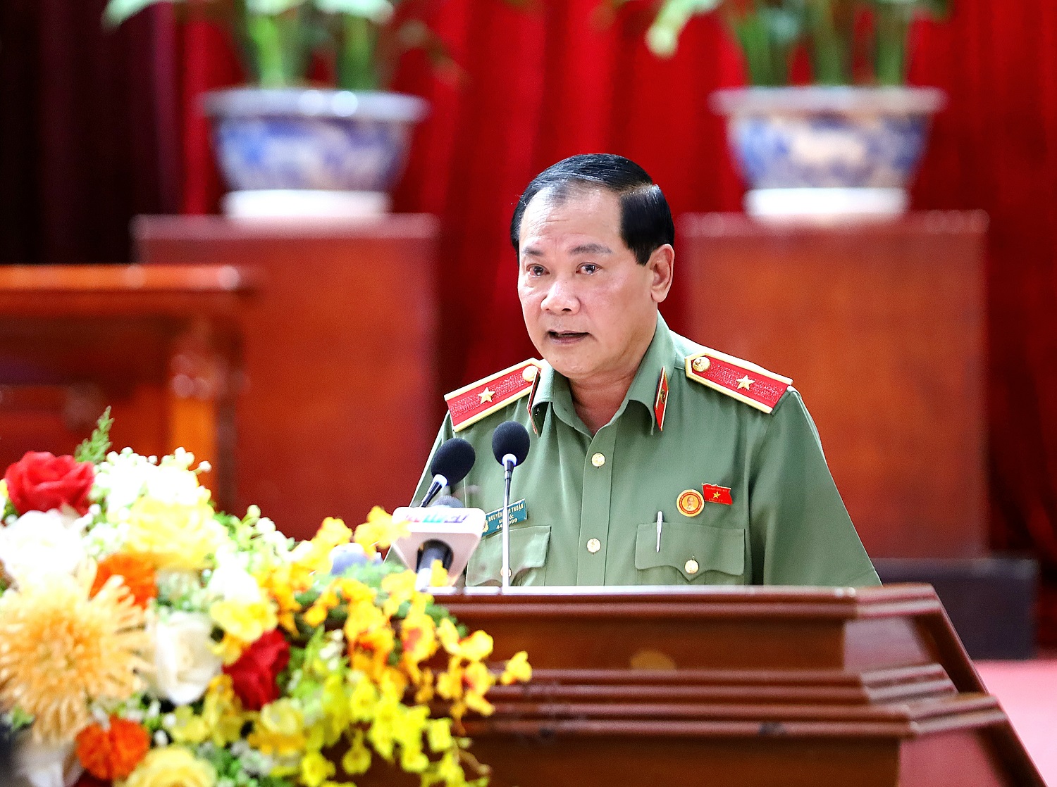 Thiếu tướng Nguyễn Văn Thuận, Trưởng đoàn Đại biểu quốc hội thành phố, Bí thư Đảng ủy, Giám đốc Công an TP Cần Thơ phát biểu tại Lễ Khai mạc kỳ họp thứ 16, Hội đồng nhân dân TP. Cần Thơ Khóa X, nhiệm kỳ 2021 – 2026.